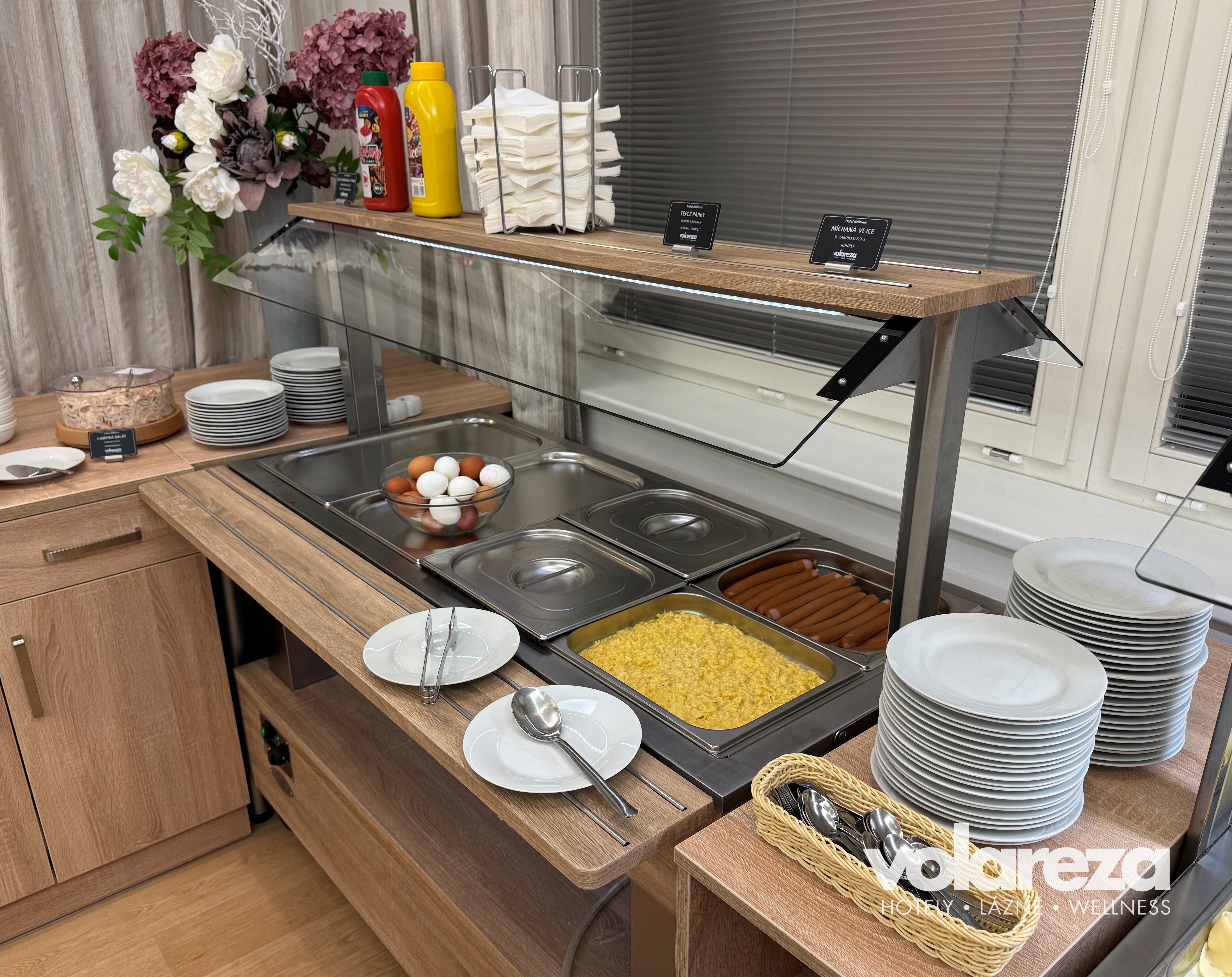 Pobyty v hotelu jsou standardně se snídaní, která je podáváná formou bufetu. V případě objednání polopenze nebo plné penze si můžete vybrat až 5 druhů jídel denně.