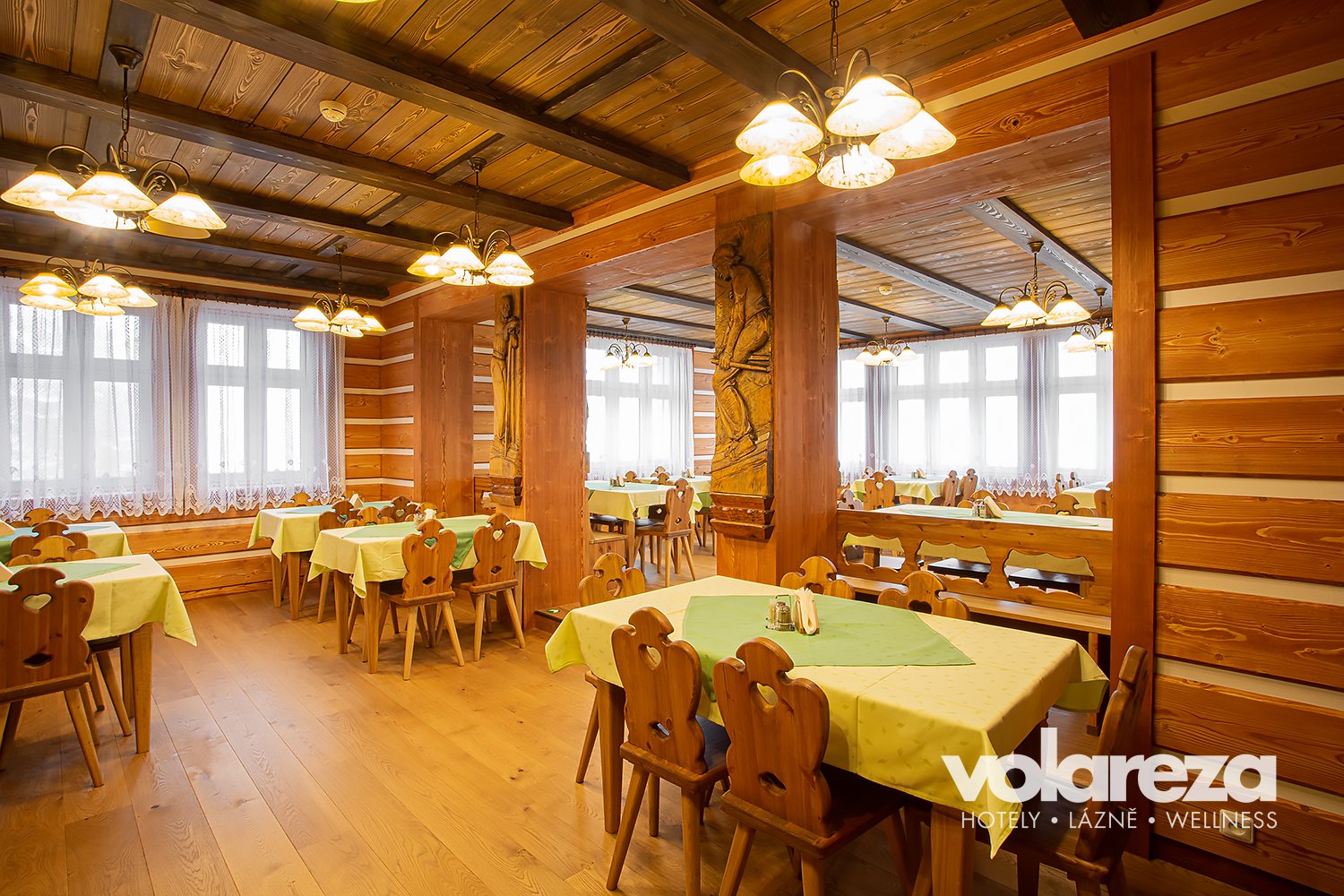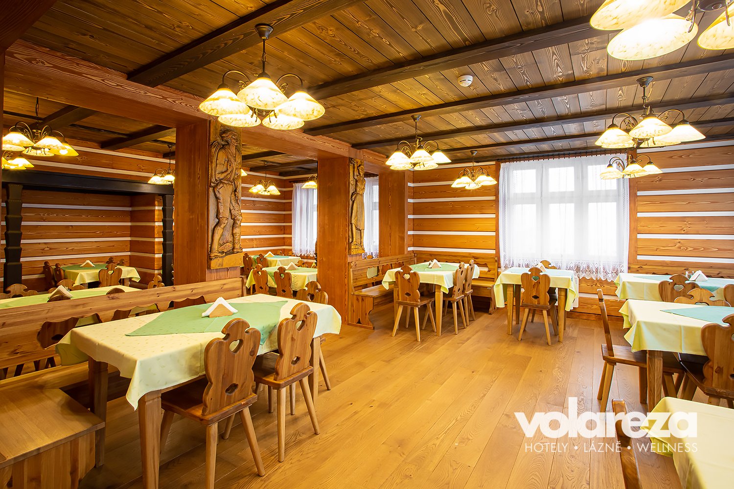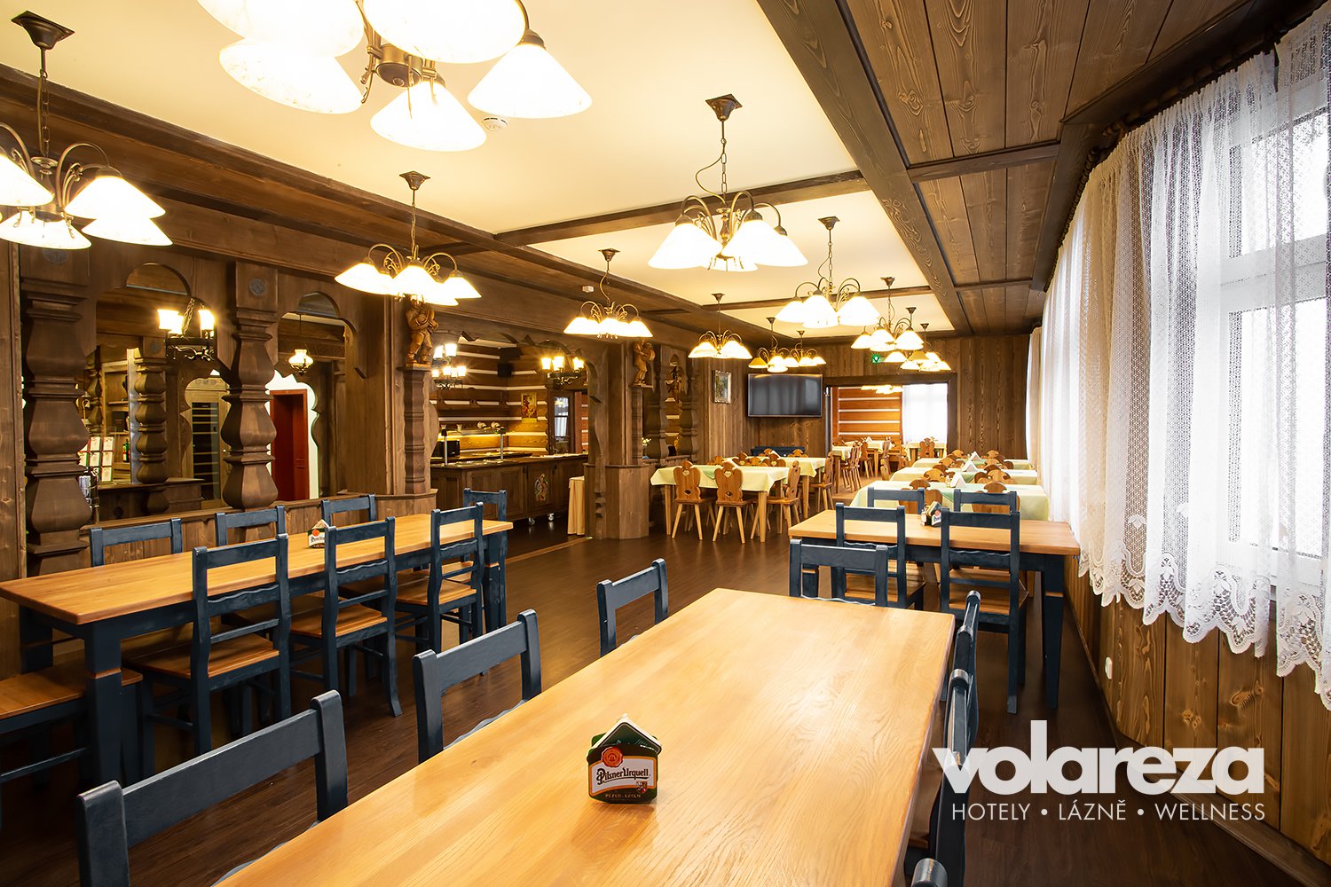 - Przyjemną atmosferę z widokiem na dolinę Bílégo Labe, cała restauracja dla niepalących