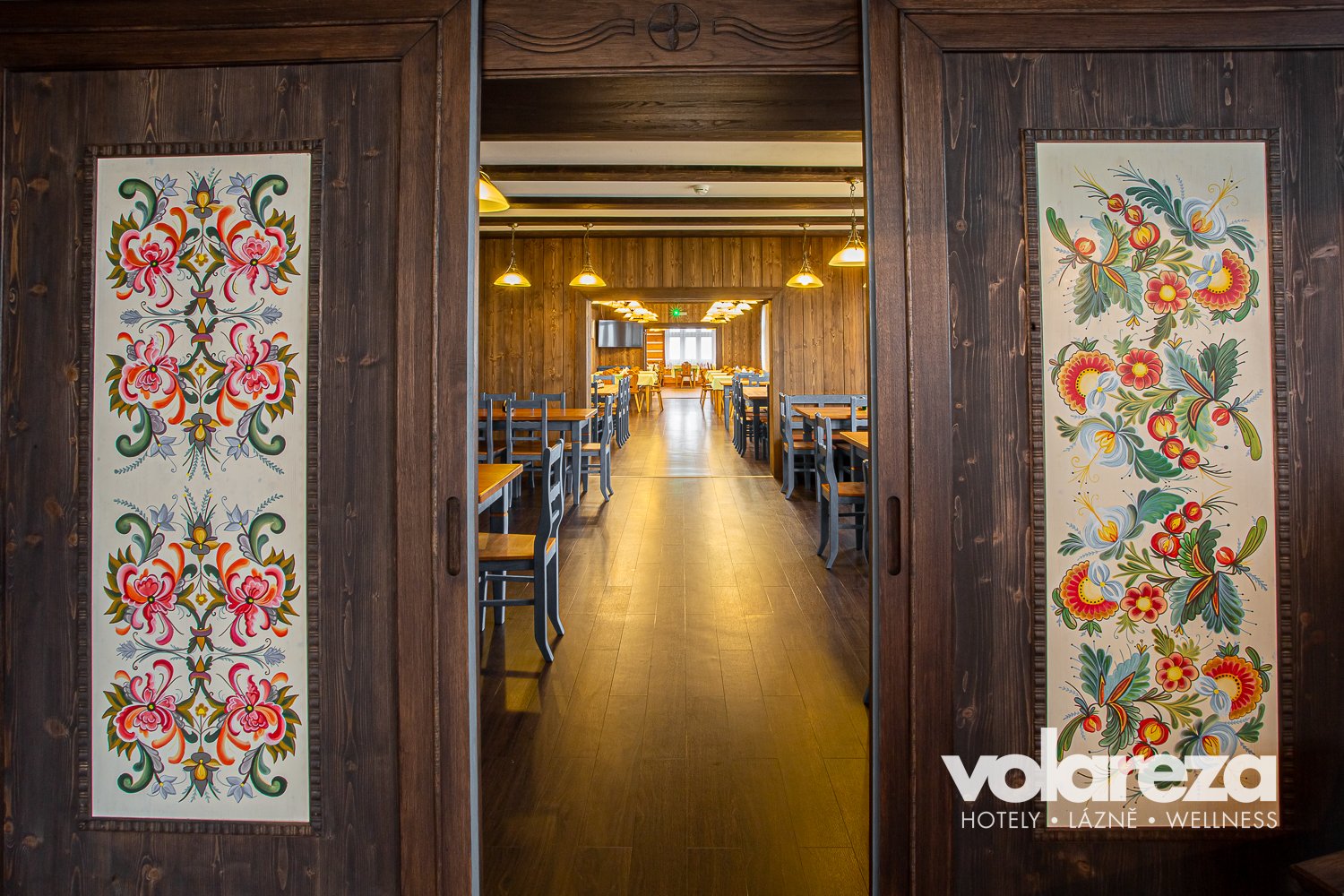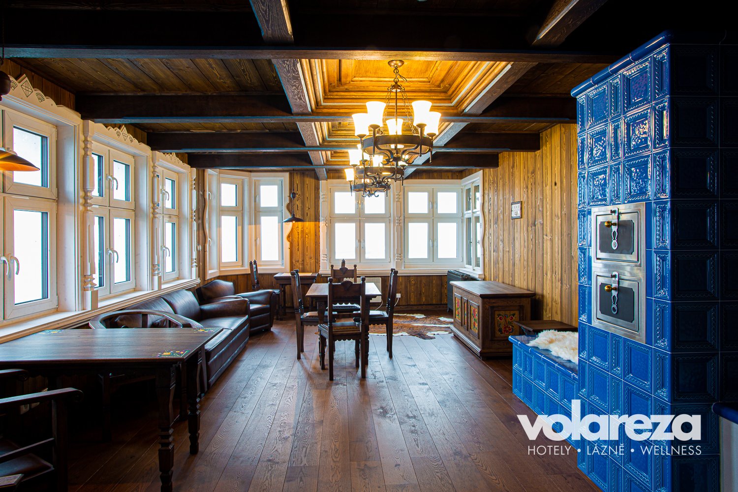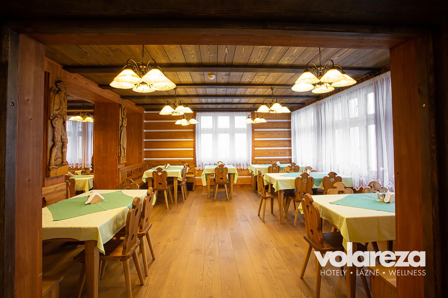 - Przyjemną atmosferę z widokiem na dolinę Bílégo Labe, cała restauracja dla niepalących